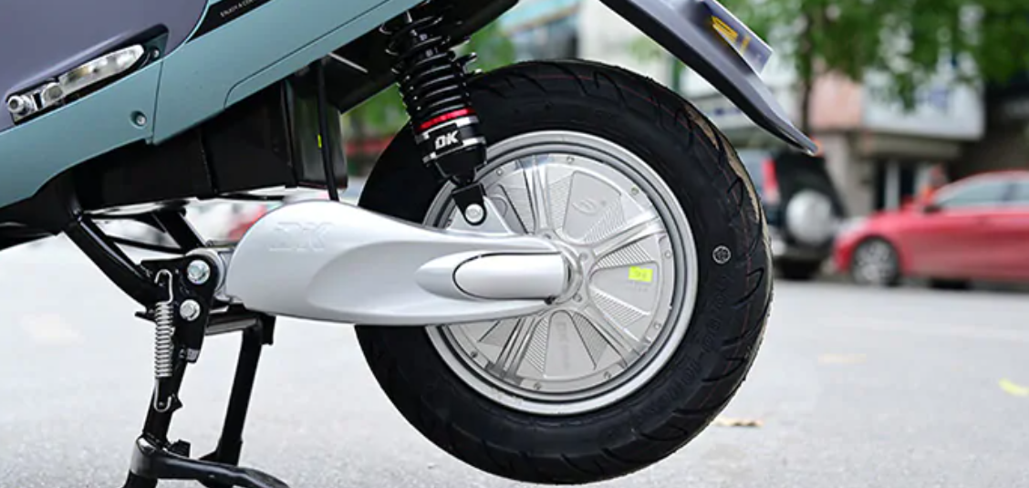 Bánh xe thép đúc mang lại độ cứng vững, trong khi lốp không săm tăng độ an toàn khi gặp sự cố cán đinh. Xe đi kèm phụ kiện như gương, bộ sạc và hệ thống chống trộm cơ bản, đáp ứng nhu cầu sử dụng hằng ngày mà không cần trang bị thêm nhiều phụ kiện bên ngoài.