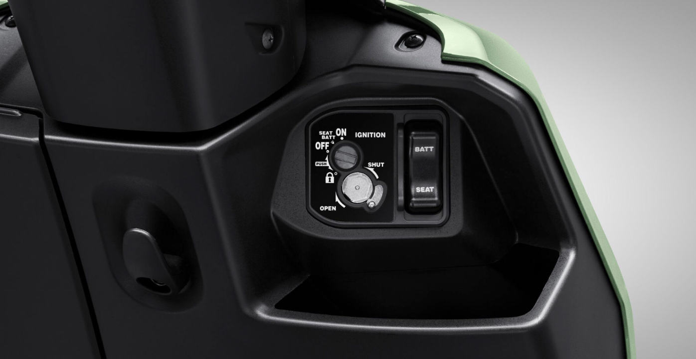 Ở phía trước, xe được trang bị hộc chứa đồ tích hợp cổng sạc USB Type-A cho phép người dùng sạc điện thoại hoặc các thiết bị di động trong quá trình di chuyển. Ổ khóa đa năng dạng cơ tích hợp giúp rút gọn thao tác sử dụng, phù hợp với nhóm khách hàng cần sự đơn giản và tiện lợi.
