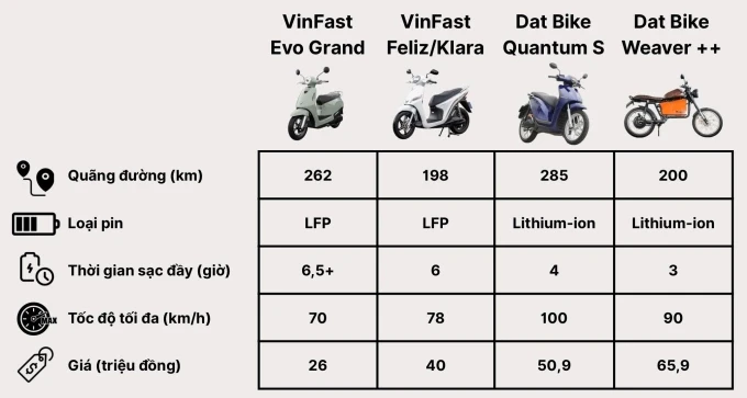 margin: 15px auto;" />Thực tế trên thị trường hiện nay cho thấy, chỉ một số ít mẫu xe điện đạt được tầm hoạt động trên 200km và đáng chú ý là tất cả đều đến từ các thương hiệu Việt Nam. Nổi bật nhất trong nhóm này là VinFast với công nghệ pin LFP và Dat Bike với pin lithium-ion dung lượng lớn.