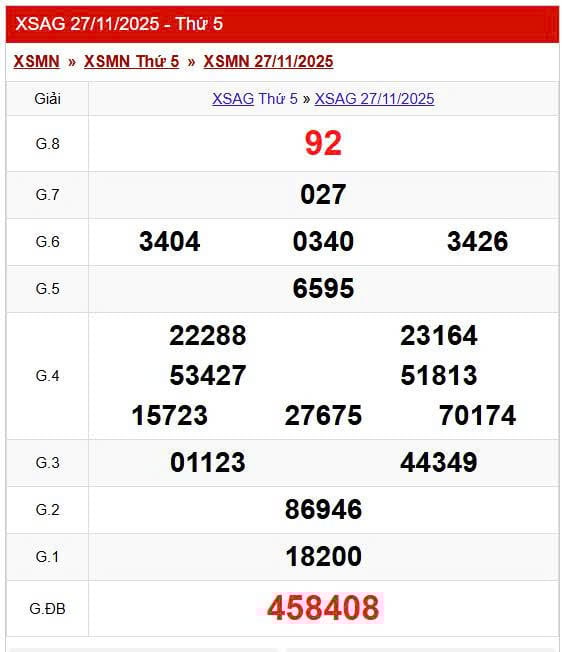 XSAG 27/11, KQXSAG 27/11. Xem lại kết quả xổ số An Giang ngày 27/11/2025
