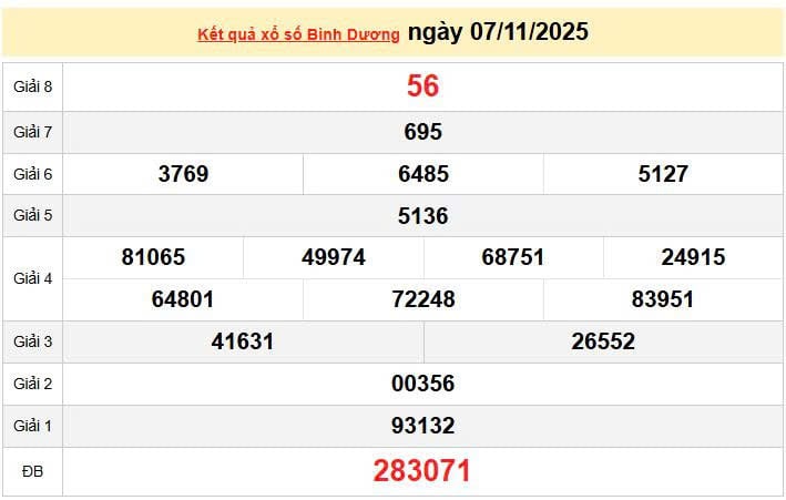XSBD 7/11, KQXSBD 7/11. Xem lại kết quả xổ số Bình Dương ngày 7/11/2025