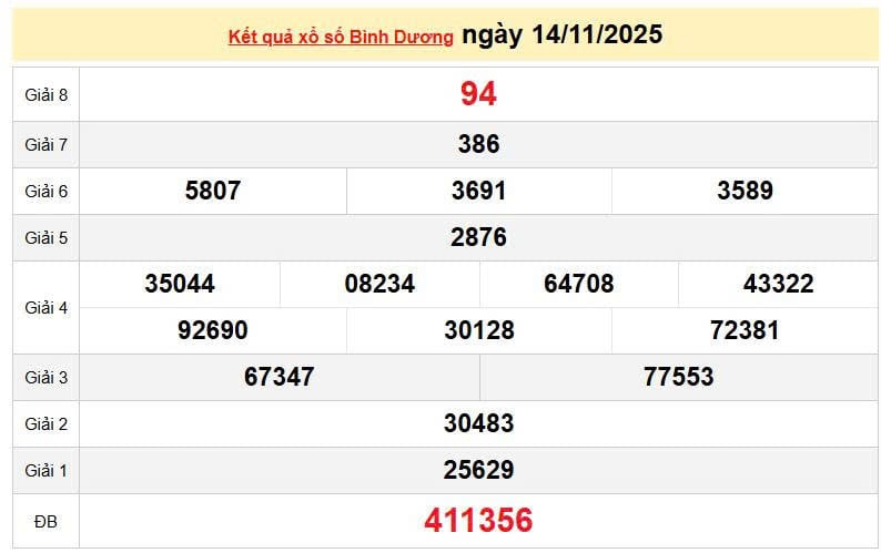 XSBD 14/11, KQXSBD 14/11, kết quả xổ số Bình Dương ngày 14/11/2025