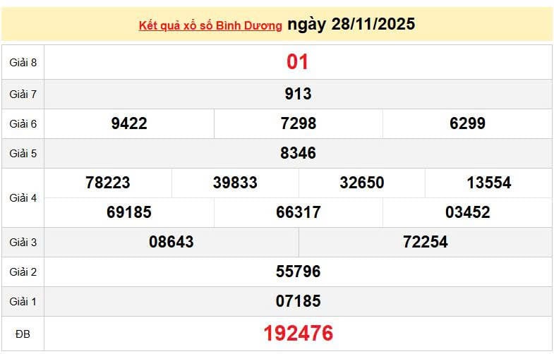 XSBD 28/11, KQXSBD 28/11, kết quả xổ số Bình Dương ngày 28/11/2025