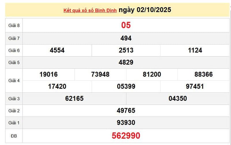 XSBDI 2/10 KQXSBDI 2/10. Xem lại kết quả xổ số Bình Định ngày 2/10/2025