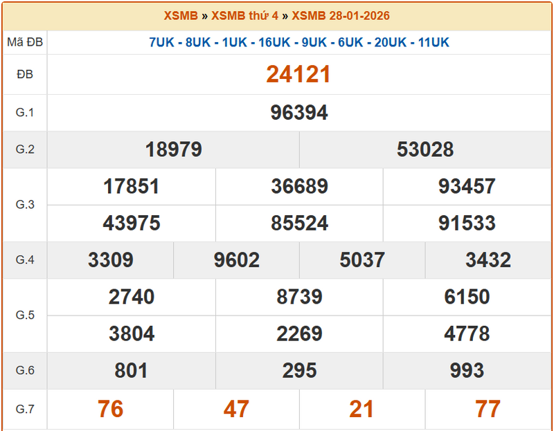 XSBN 28/1, KQXSBN 28/1. Xem lại kết quả xổ số Bắc Ninh ngày 28/1/2026