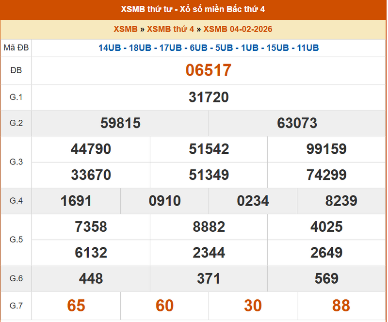 XSBN 4/2, KQXSBN 4/2. Xem lại kết quả xổ số Bắc Ninh ngày 4/2/2026
