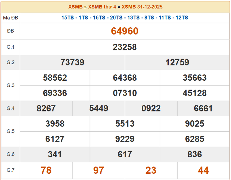 XSBN 31/12, KQXSBN 31/12. Xem lại kết quả xổ số Bắc Ninh ngày 31/12/2025