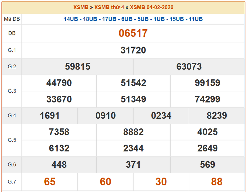 XSBN 4/2, KQXSBN 4/2. Xem lại kết quả xổ số Bắc Ninh ngày 4/2/2026