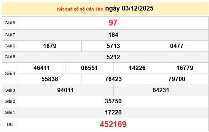 XSCT 3/12, KQXSCT 3/12. Xem lại kết quả xổ số Cần Thơ ngày 3/12/2025