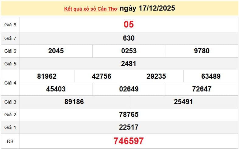 XSCT 17/12, KQXSCT 17/12. Xem lại kết quả xổ số Cần Thơ ngày 17/12/2025