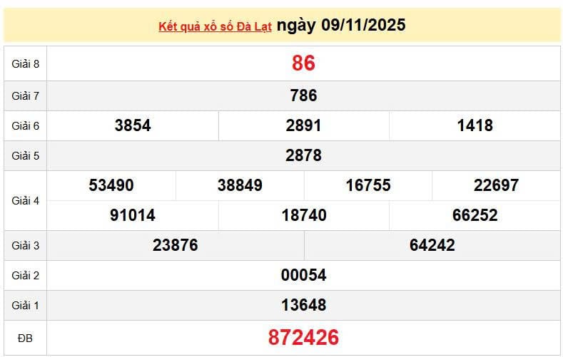 XSDL 16/11, KQXSDL 16/11 Xem lại kết quả xổ số Đà Lạt ngày 16/11/2025