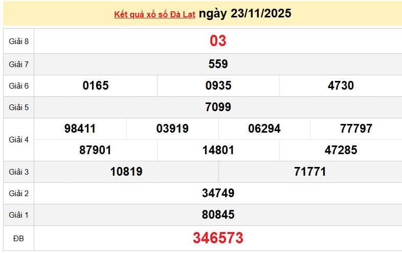 XSDL 23/11, KQXSDL 23/11. Xem lại kết quả xổ số Đà Lạt ngày 23/11/202