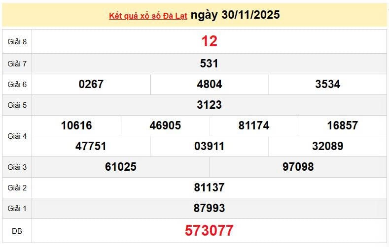XSDL hôm nay 7/12 XSDL chủ Nhật ngày 7/12/2025. Báo Công Thương trực tiếp kết quả xổ số Đà Lạt hôm nay 7/12/2025, xổ số Đà Lạt chủ Nhật, XSDL hôm nay.