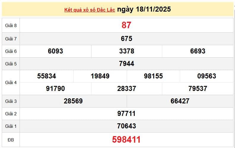 XSDLK 18/11, KQXSDLK 18/11. Xem lại kết quả xổ số Đắk Lắk ngày 18/11/2025