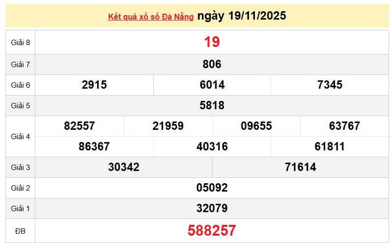 XSDNA 19/11, KQXSDNA 19/11. Xem lại kết quả xổ số Đà Nẵng ngày 19/11/2025