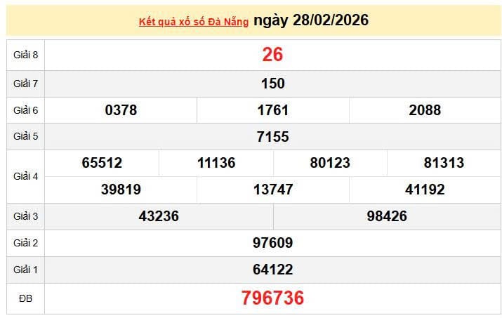 XSDNA 28/2, KQXSDNA 28/2. Xem lại kết quả xổ số Đà Nẵng ngày 28/2/2026