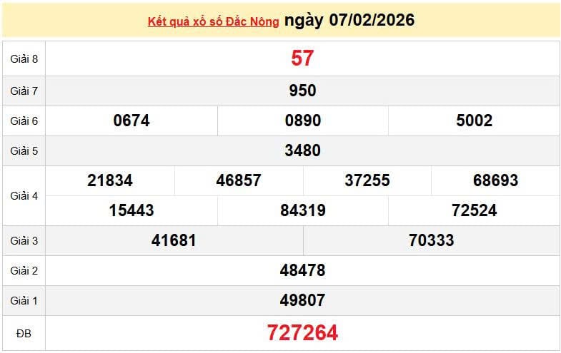 XSDNO 7/2, KQXSDNO 7/2. Xem lại kết quả xổ số Đắk Nông ngày 7/2/2026