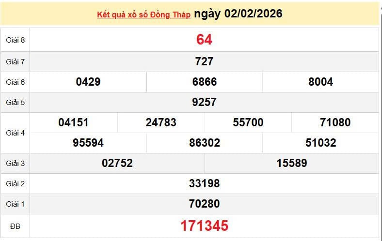 XSDT 2/2, KQXSDT 2/2. Xem lại kết quả xổ số Đồng Tháp ngày 2/2/2026