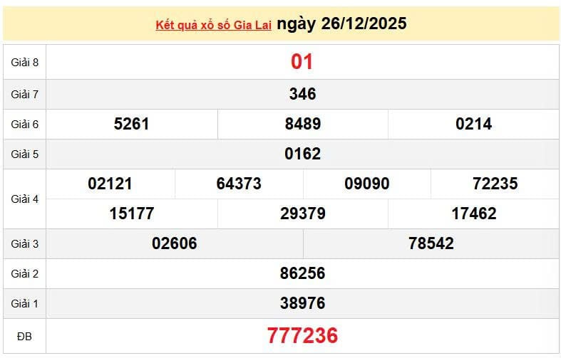 XSGL 26/12, KQXSGL 26/12, kết quả xổ số Gia Lai ngày 26/12/2025