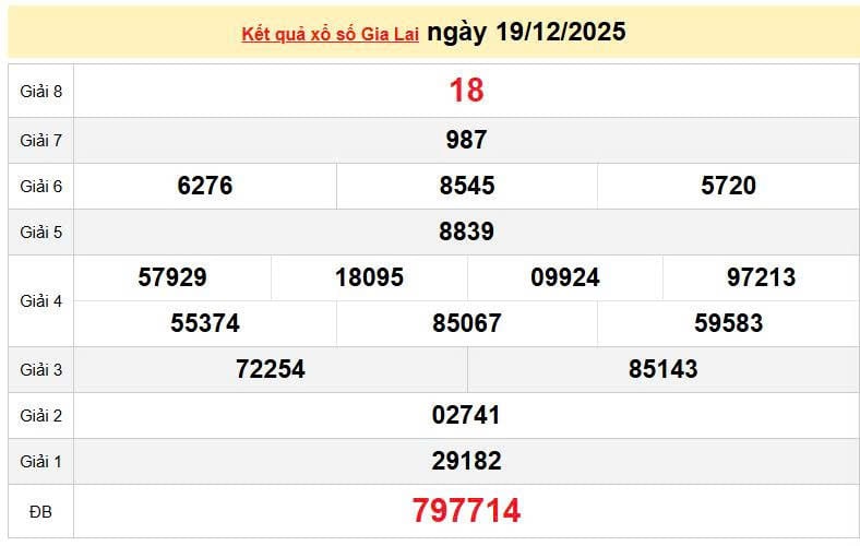 XSGL 19/12, KQXSGL 19/12. Xem lại kết quả xổ số Gia Lai ngày 19/12/2025