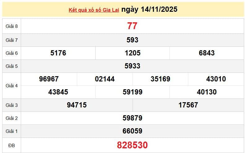 XSGL 14/11, KQXSGL 14/11. Xem lại kết quả xổ số Gia Lai ngày 14/11/2025