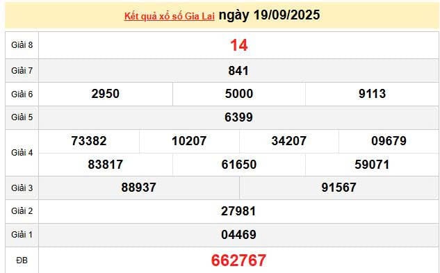 XSGL 19/9, KQXSGL 19/9. Xem lại kết quả xổ số Gia Lai ngày 19/9/2025