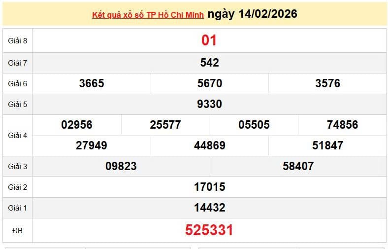 XSHCM 14/2, KQXSHCM 14/2. Xem lại kết quả xổ số TP. Hồ Chí Minh ngày 14/2/2026