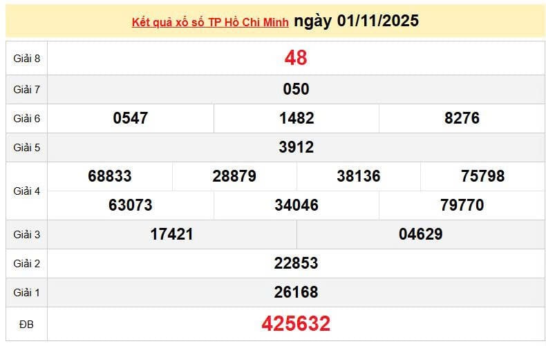 XSHCM 1/11, KQXSHCM 1/11, kết quả xổ số Hồ Chí Minh ngày 1/11/2025