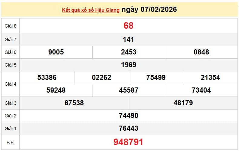XSHG 7/2 KQXSHG 7/2. Xem lại kết quả xổ số Hậu Giang ngày 7/2/2026