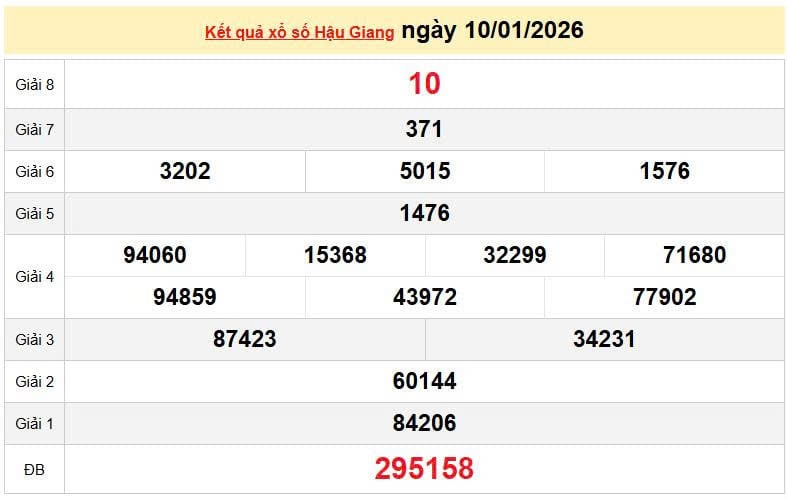XSHG 10/1, KQXSHG 10/1. Xem lại kết quả xổ số Hậu Giang ngày 10/1/2026