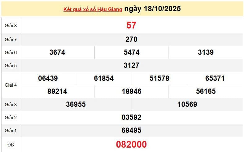 XSHG 18/10, KQXSHG 18/10. Xem lại kết quả xổ số Hậu Giang ngày 18/10/2025