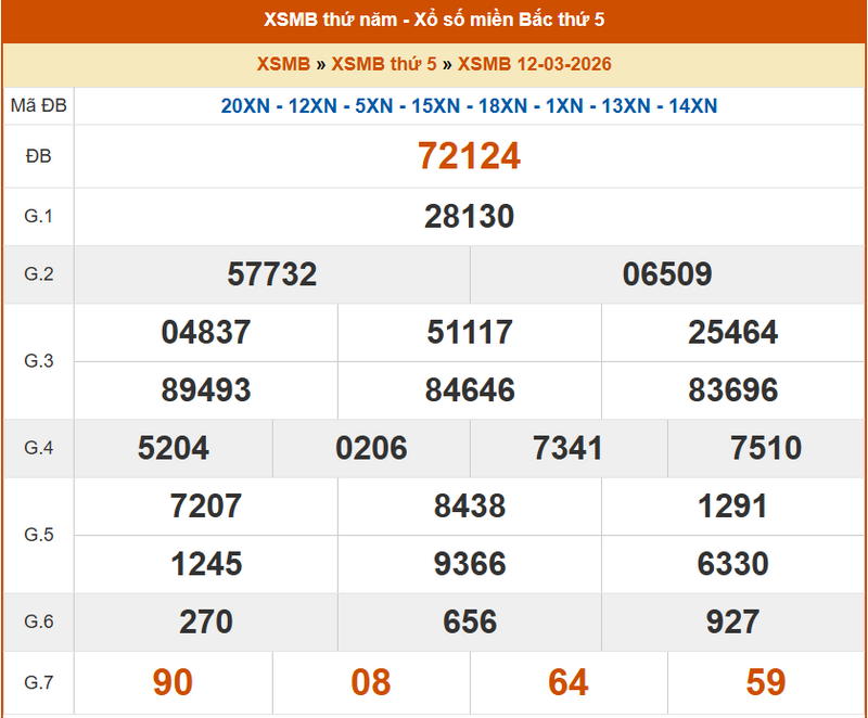 XSHN 12/3, KQXSHN 12/3. Xem lại kết quả xổ số Hà Nội ngày 12/3/2026
