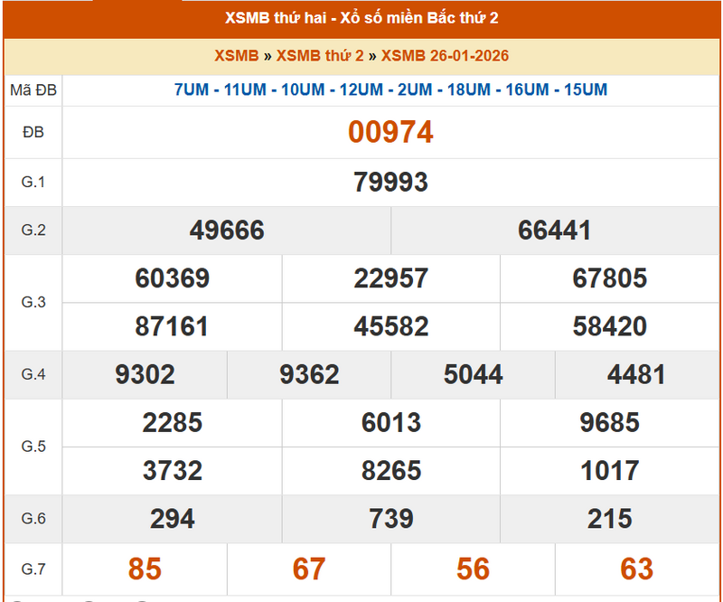 XSHN 26/1, KQXSHN 26/1. Xem lại kết quả xổ số Hà Nội ngày 26/1/2026
