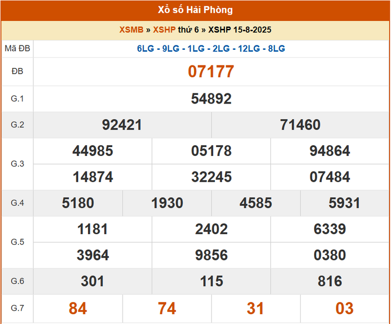 XSHP 15/8, KQXSHP 15/8. Xem lại kết quả xổ số Hải Phòng ngày 15/8/2025