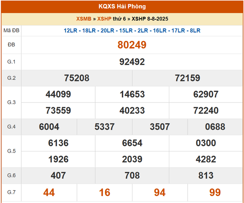 XSHP 8/8, KQXSHP 8/8. Xem lại kết quả xổ số Hải Phòng ngày 8/8/2025