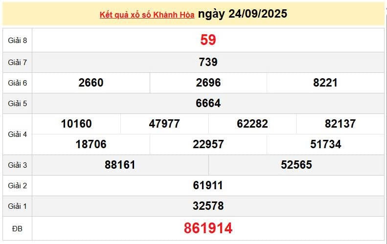 XSKH 24/9, KQXSKH 24/9. Xem lại kết quả xổ số Khánh Hòa ngày 24/9/2025