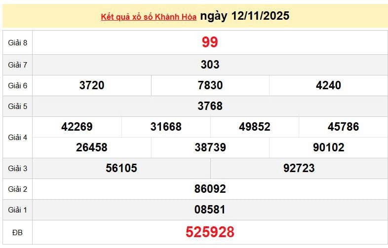 XSKH 12/11, KQXSKH 12/11. Xem lại kết quả xổ số Khánh Hòa ngày 12/11/2025