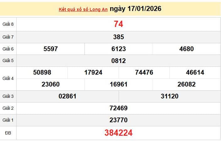 XSLA 17/1, KQXSLA 17/1. Xem lại kết quả xổ số Long An ngày 17/1/2026
