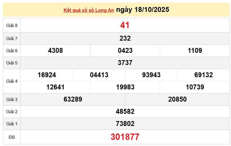 XSLA 18/10, KQXSLA 18/10. Xem lại kết quả xổ số Long An ngày 18/10/2025