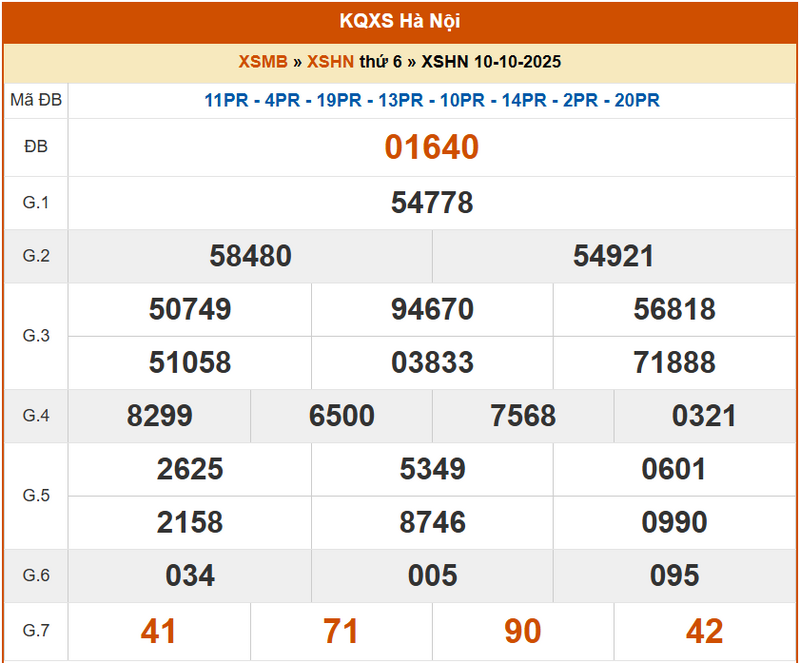XSMB 10/10, KQXSMB 10/10. Xem lại kết quả xổ số miền Bắc ngày 10/10/2025
