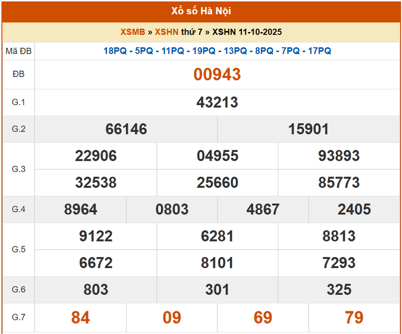 XSMB 11/10, KQXSMB 11/10. Xem lại kết quả xổ số miền Bắc ngày 11/10/2025