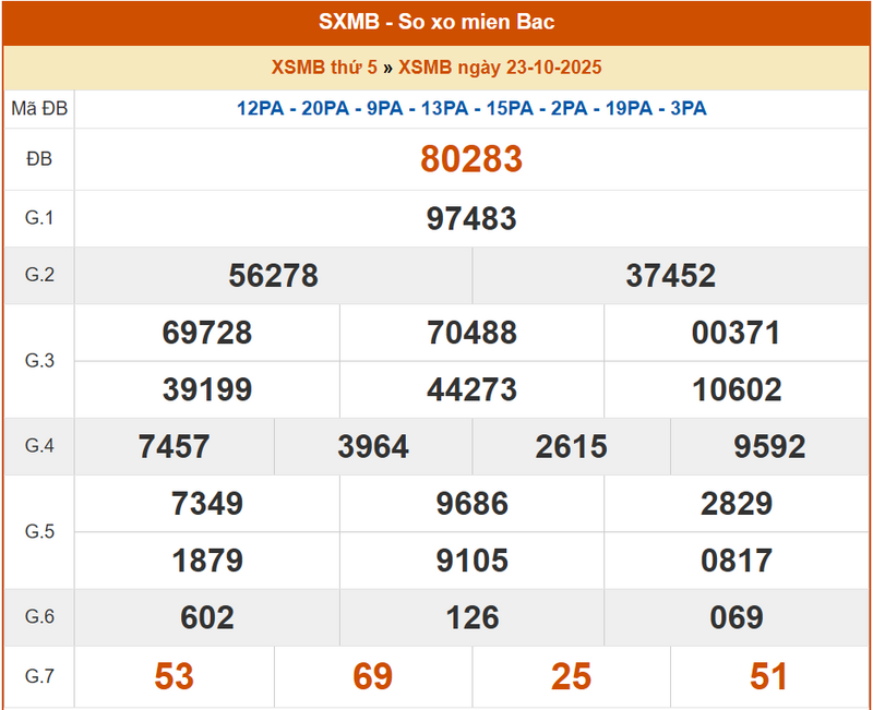 XSMB 23/10, KQXSMB 23/10. Xem lại kết quả xổ số miền Bắc ngày 23/10/2025