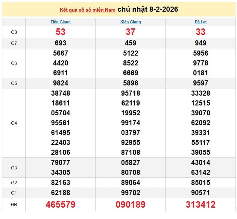 XSMN 8/2, KQXSMN 8/2. Xem lại kết quả xổ số miền Nam ngày 8/2/2026