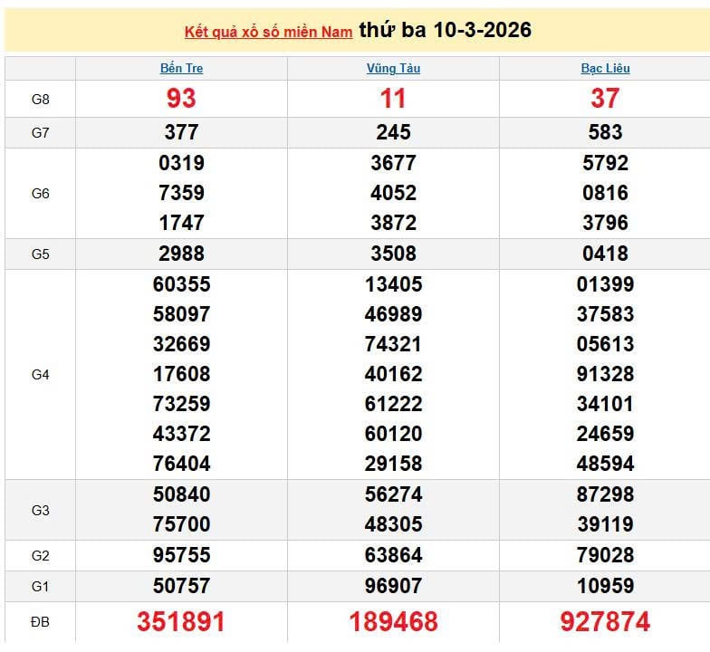 XSMN 10/3, KQXSMN 10/3. Xem lại kết quả xổ số miền Nam ngày 10/3/2026