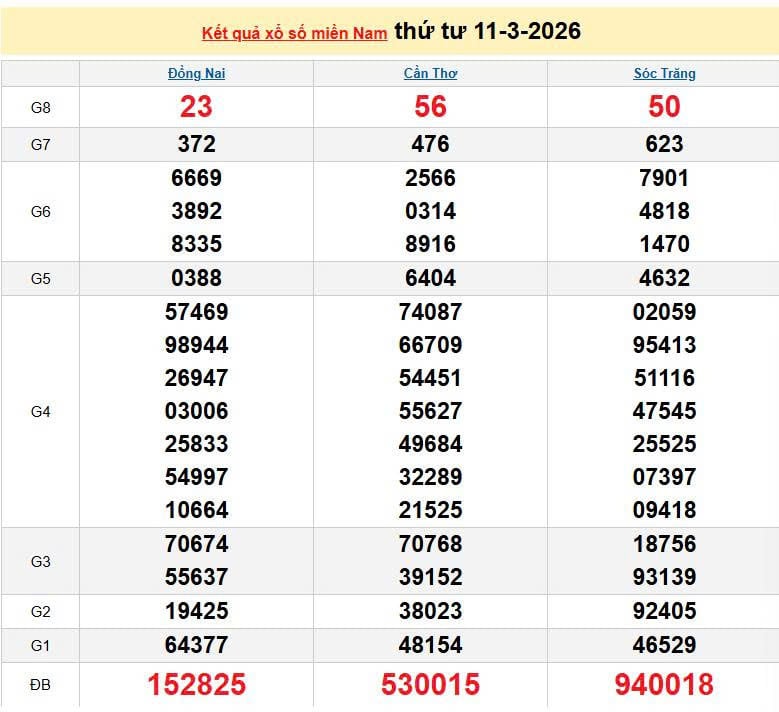 XSMN 11/3, KQXSMN 11/3. Xem lại kết quả xổ số miền Nam ngày 11/3/2026