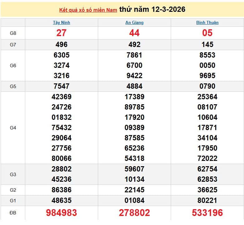 XSMN 12/3, KQXSMN 12/3. Xem lại kết quả xổ số miền Nam ngày 12/3/2026
