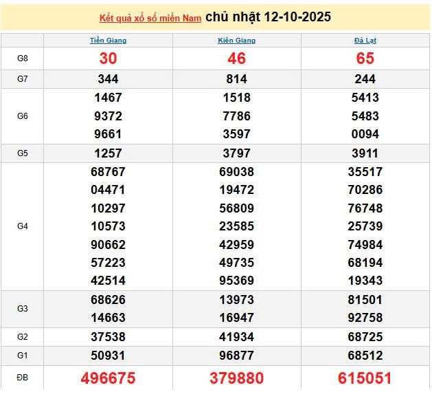 XSMN 12/10, KQXSMN 12/10. Xem lại kết quả xổ số miền Nam ngày 12/10/2025