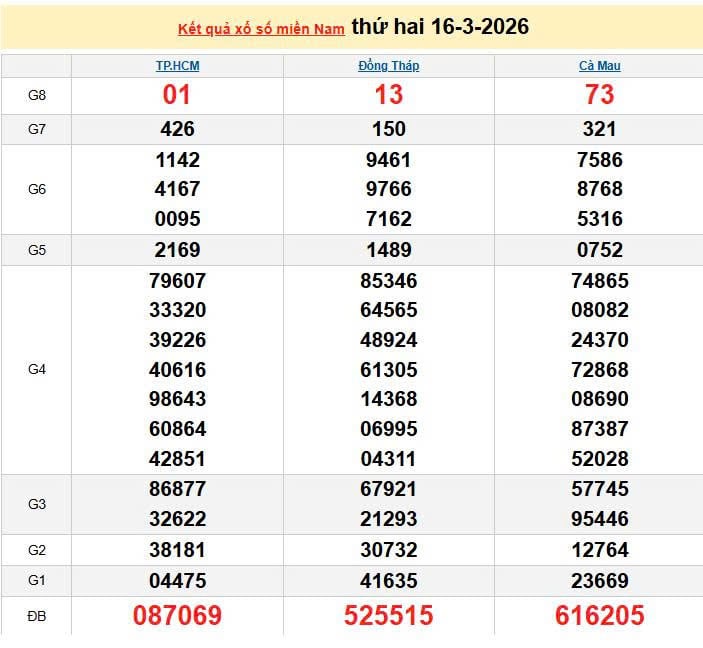 XSMN 16/3, KQXSMN 16/3, kết quả xổ số miền Nam ngày 16/3/2026