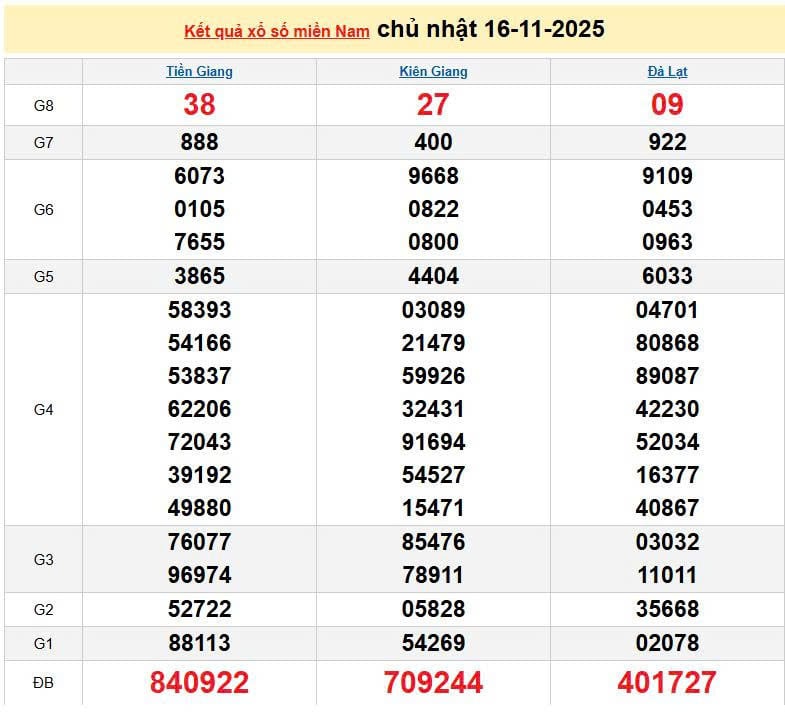 XSMN 16/11, KQXSMN 16/11. Xem lại kết quả xổ số miền Nam ngày 16/11/2025
