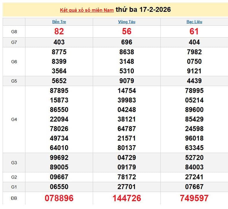 XSMN 17/2, KQXSMN 17/2, kết quả xổ số miền Nam ngày 17/2/2026